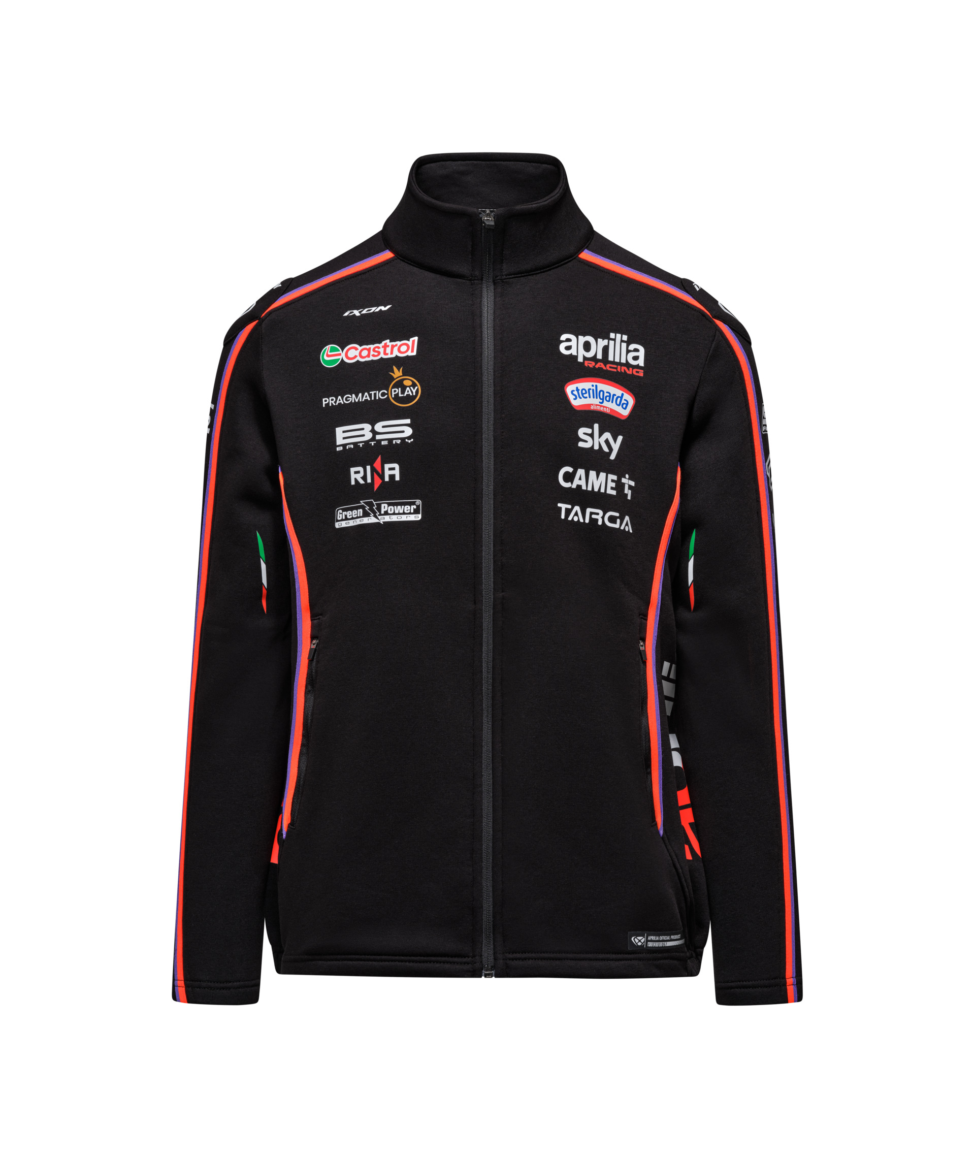 Mostra il tuo sostegno ad Aprilia Racing con la felpa Aprilia Racing MotoGP Replica da uomo. Questa felpa nera e rosso neon è una replica esatta del design indossato dal Team Aprilia Racing nel MotoGP 2025. Questa felpa offre una vestibilità comoda e un materiale tecnico ispirato all'abbigliamento da corsa. La grafica della felpa è ispirata alla livrea 2025 delle moto Aprilia Racing e aggiunge un tocco unico al tuo abbigliamento da gara. Il retro della felpa mostra con orgoglio la bandiera italiana, simbolo del ricco patrimonio e dello spirito di competizione che Aprilia Racing incarna. Materiale: Poliestere e cotone.